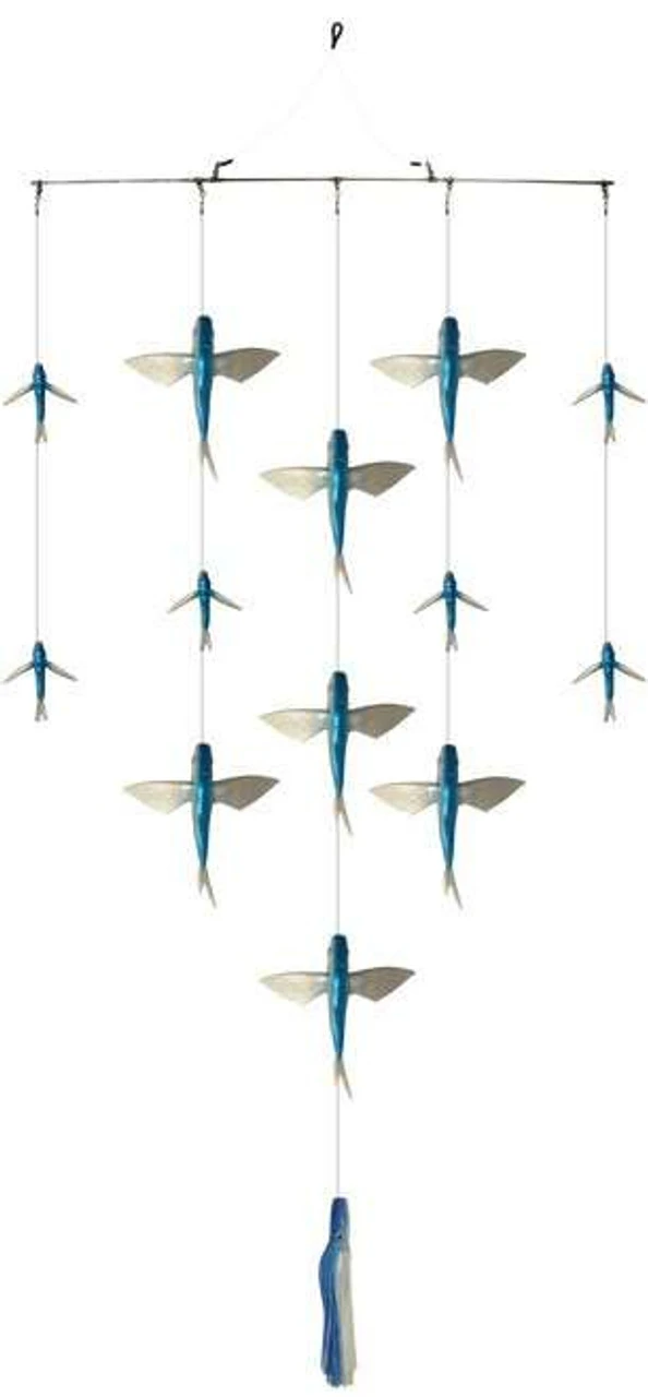 The Fish Razr Flying Fish Spreader Bar is equipped with a 36″ heavy duty braced spreader bar so it pulls straight and can hold up to fish strikes. With a mixture 4″ and 9″ flying fish and a large chugger this spreader bar is sure to put fish in the boat! The center drop is 5 foot long and has a Marlin Range lure as the last teaser that can be easily rigged with a hook and uses as a bait for tuna. Professionally made in the USA, rigged with 300lb leaders and premium tackle for durability, this spreader bar is as good as it gets for offshore trolling. Each spreader bar comes with a mesh teaser bag for easy storage.
